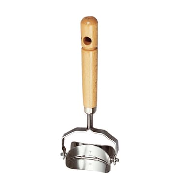 Pastaskärare Stor oval. Skapar runda pastaplattor eller kakor när man rollar över degen. Av rostfritt stål och bok.Endast handdiskLäs mer om produkten