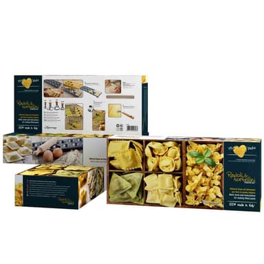 Gör din egen Ravioli eller Tortellini från grunden. Setet innehåller det mesta verktygen för att lyckas. Ingredienserna hittar du i en vanlig matbutik. Recept och instruktioner medföljer.Läs mer om produkten