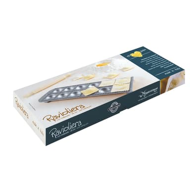 Ravioliform av aluminium med 12 runda hål samt en kavel av bok. Formen gör raviolis med måtten 52 x 52 mmLäs mer om produkten