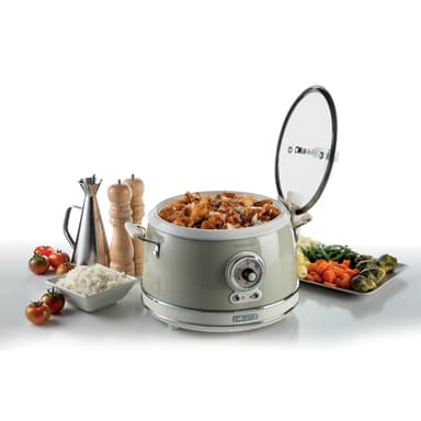 Riskokare från Ariete med långsam tillagningsfunktion för grytor och soppor och multitillagningssystem: steka, ånga, långkoka och värma upp.Läs mer om produkten