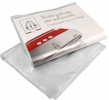 Tre Spade vakuumpåsar 25 x 35 cm F722535/50 är ett paket med 50 påsar för vakuumförsegling. Vakuumpåsarna är gjorda av slitstark plast för att säkerställa perfekta resultat. Kompatibla med Takaje/ CE-Black vakuumförpackare.Läs mer om produkten