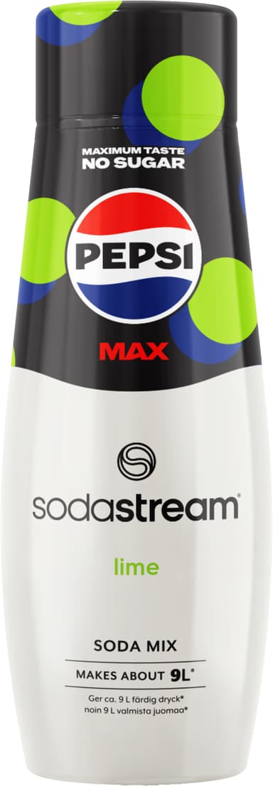 Använd SodaStream smakkoncentrat och njut av den fantastiska smaken av Pepsi MAX Lime. 440 ml-flaskan ger cirka 9 liter färdig dryck.Läs mer om produkten