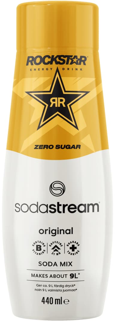 Energibringande SodaStream Rockstar Energy Original Zero smak 1924221770 låter dig njuta av originalsmaken från Rockstar energidryck med hjälp av din SodaStream-maskin. Flaskan på 440 ml ger 9 l läcker sockerfri dryck.Läs mer om produkten