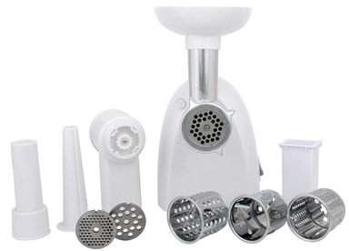 En solid enhet för dig som vill göra hemgjorda korvar eller egen köttfärs. Den är utrustad med tre hålskivor. I uppsättningen ingår också en kolv och korvstoppare. Hela enheten är tillverkad av hållbara material som är lätta att demontera och rengöra.