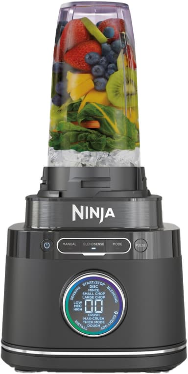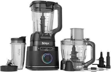 Ninja Detect Power Pro-mixern TB400 på 1200 watt är utformad för att förenkla matlagningen. Den levereras med en 2-literskanna, en 1,8-liters matberedningsskål och en 680 ml mugg, och klarar enkelt av att mixa, hacka, skiva och knåda deg.Läs mer om produkten