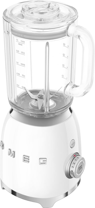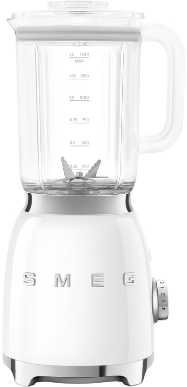 Smeg blender BLF03WHEU 800 W motor, 4 hastighetsnivåer och en fantastisk retrodesign. Tillsätt bara dina favoritingredienser, mixa direkt i flaskan och du är redo att ta med dig din smoothie.Läs mer om produkten