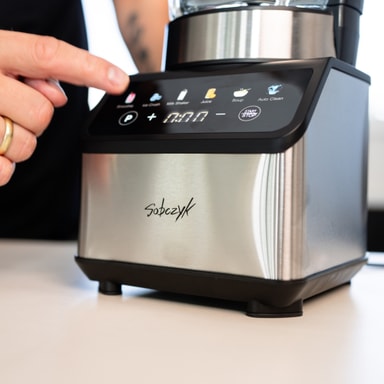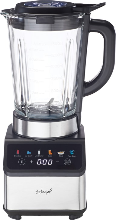 1200W Sobczyk Digital blender CS1509 har en 1,5L glasskål, 6 hastigheter och kan krossa nötter, frukt, grönsaker och is. Dess digitala display inkluderar hastighetsval och förinställda program för enkel matlagning.Läs mer om produkten