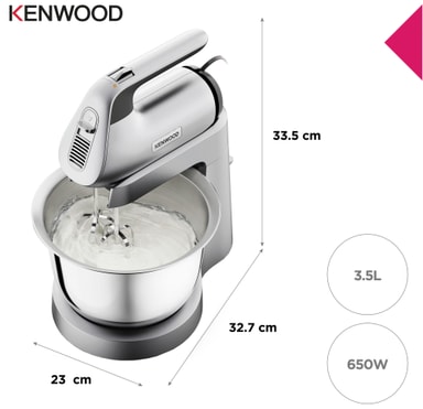 Skapa läckra recept med Kenwood Chefette Lite handmixer HMP54.000.SI. Med en 650W motor erbjuder den en mjukstart, pulsfunktion och en 3,5-liters skål. Den inkluderar även hållbara vispar och degkrokar i rostfritt stål.Läs mer om produkten