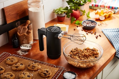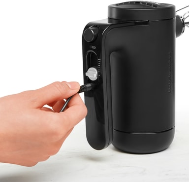 KitchenAid Cordless elvisp 5KHMB732EBM är en högeffektsapparat utan en sladd som kommer i vägen. Elvispen kommer med ett 12V uppladdningsbart batteri, turbovispar i rostfritt stål och en mjuk startfunktion.Läs mer om produkten