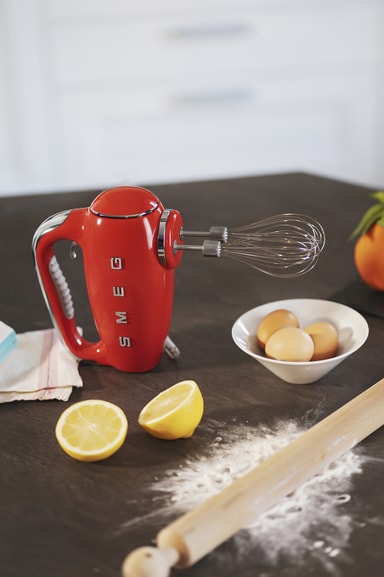 Vintagestil och modernitet kombineras hos Smeg 50's Style handmixer HMF01RDEU. Gör den perfekta degen, grädden, såsen eller allt annat tack vare den kraftfulla 250W-motorn, 9 hastigheter och ett brett utbud av olika tillbehör.Läs mer om produkten