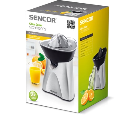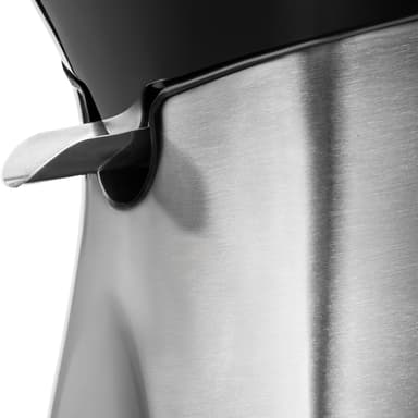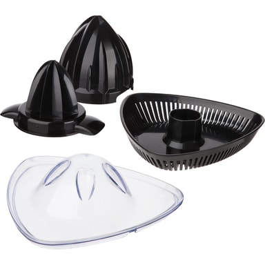 Juicepress lämplig för beredning av färsk juice från citrusfrukter (apelsinjuice, citronsaft för te, etc.)Ytterhöljet är av rostfritt stålTvå juice-koner: liten juice-kon (t.ex. för limefrukter), stor juice-kon (t.ex. för apelsiner)Läs mer om produkten