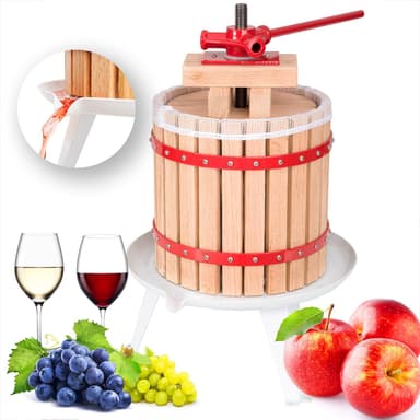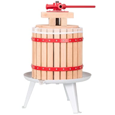 Med denna vackra och funktionella fruktpress du kan bearbeta frukt från trädgården på ett traditionellt sätt och göra egen juice. Det blir enkelt att få egen juice med denna fruktpress med skruvpressar och korg av trä.Läs mer om produkten