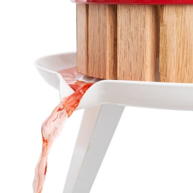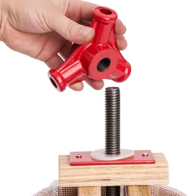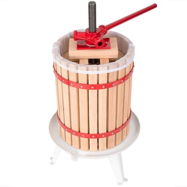 Med denna vackra och funktionella fruktpress du kan bearbeta frukt från trädgården på ett traditionellt sätt och göra egen juice. Det blir enkelt att få egen juice med denna fruktpress med skruvpressar och korg av trä. Det idealiska är att denna fruktpress är att den passar för till exempel äpplen, päron, vindruvor, men även apelsin och många andra frukter. Fruktpressen fungerar mekaniskt utan elektricitet. Pressväv ingår i leveransen.