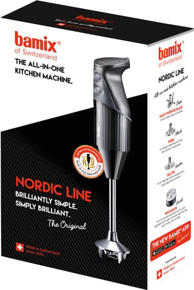 Schweizisk kvalitet och nordisk minimalism kombinerat. Bamix Nordic Line stavmixer BAM13355 hjälper dig mixa, blanda och krossa ingredienser. Tre blad i rostfritt stål och en kraftfull matberedare medföljer.Läs mer om produkten