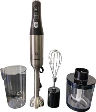 F&B stavmixer 73499 har 6 hastigheter, turboläge, titanbelagd 6-bladig kniv, inkluderar 500 ml hackskål, 600 ml mätbägare, rostfri visp. Alla delar diskmaskinsäkra.Läs mer om produkten