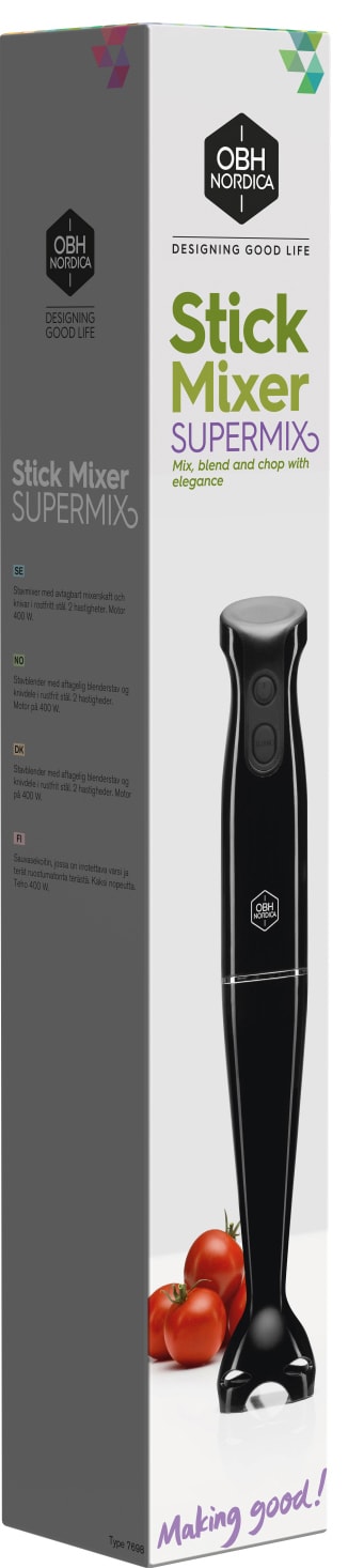 Fixa maten snabbt och med ett enda knapptryck tack vare OBH Nordica Super stavmixer OBH7698 som har en hastighetsinställning, turbo/pulsfunktion samt en 400 watts motor som snabbt förvandlar grönsaker till soppa och frukt till smoothie.Läs mer om produkten