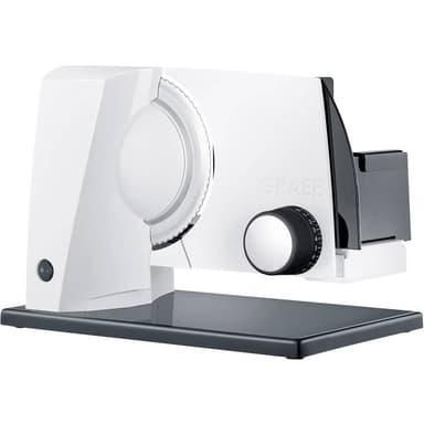 Graef Skärmaskin S11001 VitI modern design Made in Germany enkel hantering säker hantering tack vare kompakta mått för alla kök. Lämplig för vågtandad kniv i rostfritt stål Ø170 mm med safety-lås för snabbt och säkert byte av kniv: ideal för bröd,Läs mer om produkten