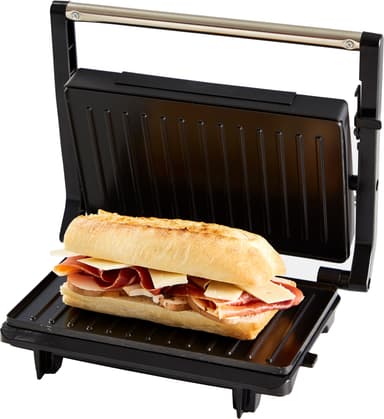 Gör läckra panini och krispiga smörgåsar snabbt med Day panini grill 72400. 1000W, non-stick beläggning förhindrar fastbränt bröd, och värmebeständiga handtag garanterar säker användning.Läs mer om produkten