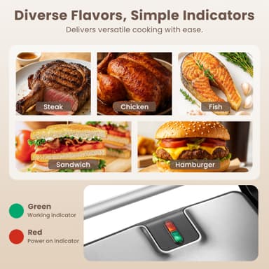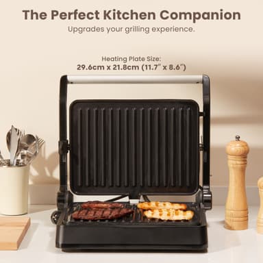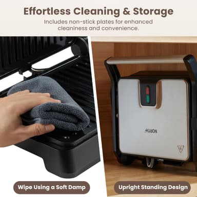 North paninigrill 205008 har en non-stick grillyta på 29,6 x 21,8 cm för perfekt krispiga, gyllenbruna smörgåsar. Den är utrustad med indikatorlampor som visar när apparaten är uppvärmd och när dina smörgåsar är klara att avnjutas.Läs mer om produkten
