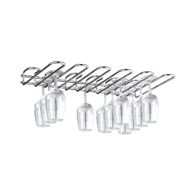 Lasiteline, joka voidaan kiinnittää seinään, kattoon tai keittiökaapin alle. Telineessä on viisi uraa ja se on 45 cm leveä, 32 cm syvä ja 6 cm korkea.