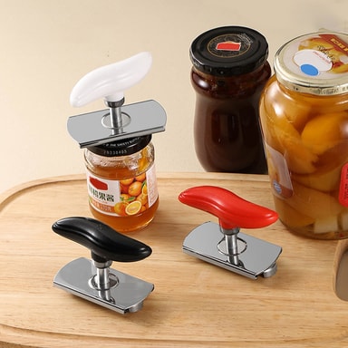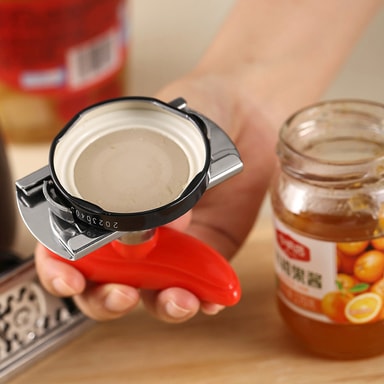 Justerbar design: Med en innovativ justerbar mekanism passar denna öppnare ett brett utbud av flaskor och burkar. Vrid bara på vredet för att justera greppet och säkerställa ett säkert grepp på alla lock. Slipp kämpa med envisa burkar eller flaskor!