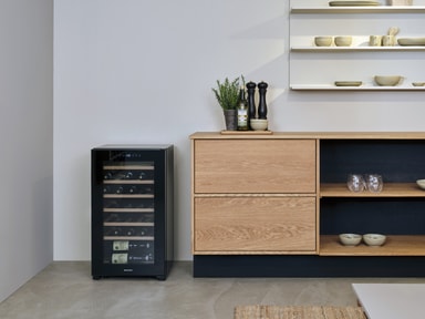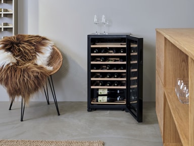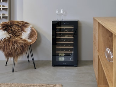Förvara din vinsamling med stil i detta fristående vinkylskåp med kompressor. Det svarta metallskåpet och den slanka dörrramen skapar ett modernt utseende, medan det härdade dubbelglaset säkerställer optimal isoleringLäs mer om produkten