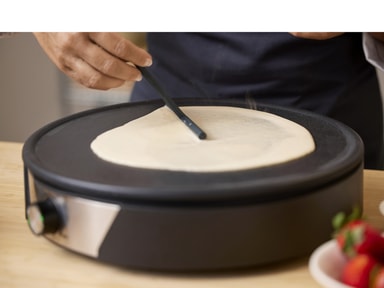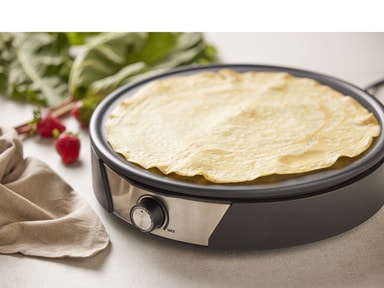 Skäm bort familjen med läckra, nygräddade pannkakor – söta eller salta, tunna och spröda eller tjocka och svampiga, allt efter vad ni föredrar. Crêpepannan har keramisk non-stick-beläggning och en diameter på 38 cmLäs mer om produkten