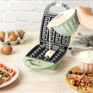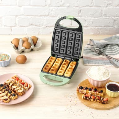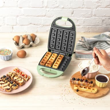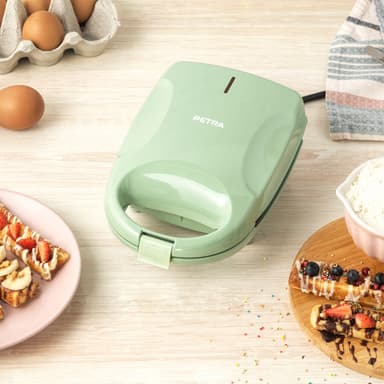 Fixa 4 läckra våffelpinnar med Petra Waffle Iron 500006. Detta nonstick-våffeljärn värms upp på bara 3 minuter, perfekt för frukosten.Läs mer om produkten