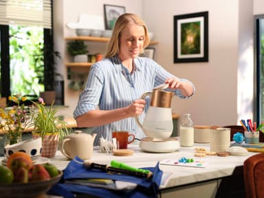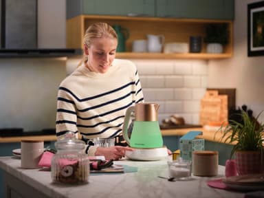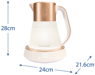 2400-watts Russell Hobbs Calm Kettle 27450-70 rymmer 1,7 liter och värmer från 40 till 100°C. Den har en kropp i frostat glas, Quiet Boil-teknik, en varmhållningsfunktion och automatisk avstängningsfunktion för snabb och bekväm uppvärmning.Läs mer om produkten