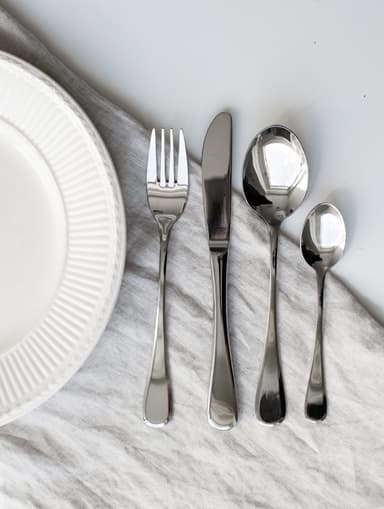 Rivoli on moderni sarja klassiselta Eternumilta. Astiat ovat kiiltävää ruostumatonta terästä, 18/10, paksuus 2,5 mm. Paketissa on kuusi kappaletta kutakin: haarukka, veitsi, ruokalusikka ja teelusikka.