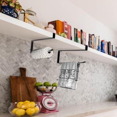 Håll ordning och reda med vår hållare för pappersrullar och mycket annat. Den moderna designen är också ett riktigt blickfång.