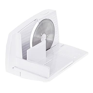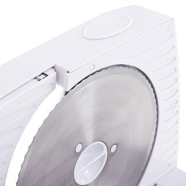 Kompakt, säker och lätt att vika är tre saker som kännetecknar denna skärmaskin. Den starka plasten som den är gjord av gör den lätt att transportera. Det högkvalitativa bladet i rostfritt stål gör att du kan skära chark i tunna skivor och skära en fast skiva lantbröd. Tjockleken på skivorna kan enkelt justeras. Hela matskäraren kan enkelt tas isär i bitar, vilket gör rengöringen enkel. Tar väldigt lite plats. Tack vare det fällbara alternativet kan du efter användning passa in den i köksskåpet. Säkerhetsknappen skyddar mot oavsiktlig skada. Dessutom är påskjutaren utformad för att skydda dina fingrar. Gummifötter hindrar skärmaskinen från att röra sig.