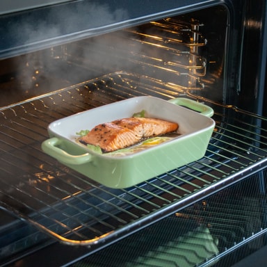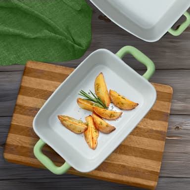 Den rektangulära formen har två praktiska handtag som gör det lätt att ta bort den. Tack vare sin minimalistiska design passar den perfekt in i alla kök och matsalar.