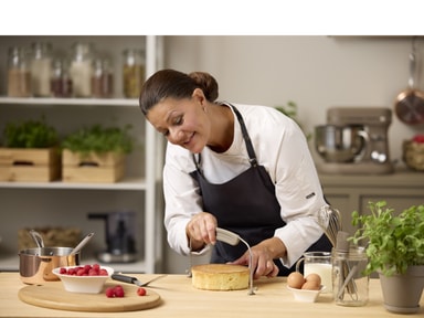 Med den här justerbara tårtbottensdelare kan du skära dina hemmagjorda tårtbottnar med ett snyggt, rakt snitt. För bästa resultat, se till att tårtan är helt nedkyld innan du börjar skära och använd små sågrörelserLäs mer om produkten