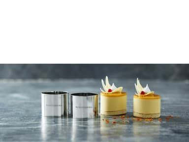 Två tårtringar i stål, vardera 6 x 5 cm. Perfekta för att få en jämn form när du gör tårtor, desserter och glasstårtor, vilket ger en elegant, inbjudande och professionell look till dina söta kreationer. Tål maskindisk, ugn och frysLäs mer om produkten