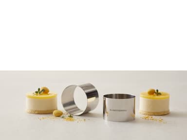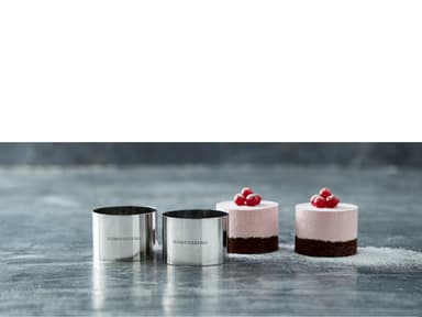 Två tårtringar i stål, vardera 7 x 5 cm. Perfekta för att få en jämn form när du gör tårtor, desserter och glasstårtor, vilket ger en elegant, inbjudande och professionell look till dina söta kreationer. Tål maskindisk, ugn och frysLäs mer om produkten