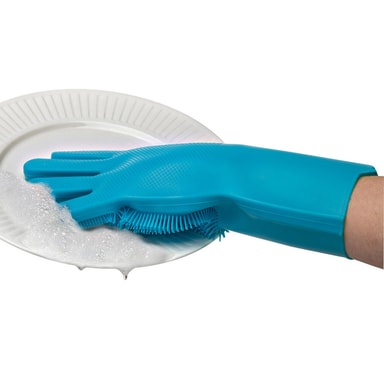 En diskhandske med en funktionen som en diskborste. Diskhandskarna är av silikon. Miljövänligt och praktiskt. Säljs i sorterade färger.Läs mer om produkten