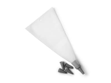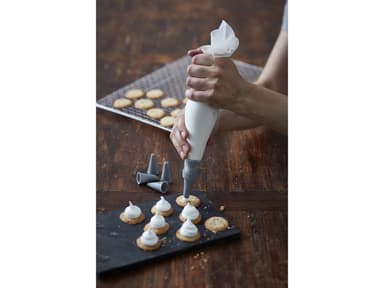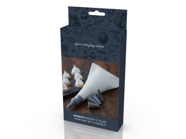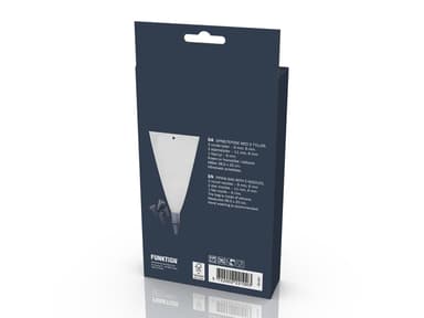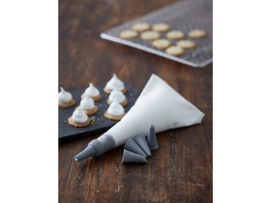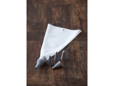 Spritspåse 5 tyllar grå Funktion. Spritspåse med 5 tyllar. Påsen är tillverkad av silikon. 38,5 x 20 cm Handdisk rekommenderas.Läs mer om produkten