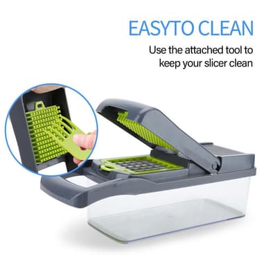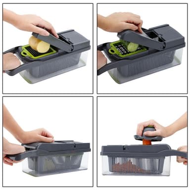 Med denna grönsaksskärare hackas olika frukter och grönsaker jämnt inom några minuter. Sallader kan förberedas, lök skivas, potatis rivas och mycket mer i bara några steg.