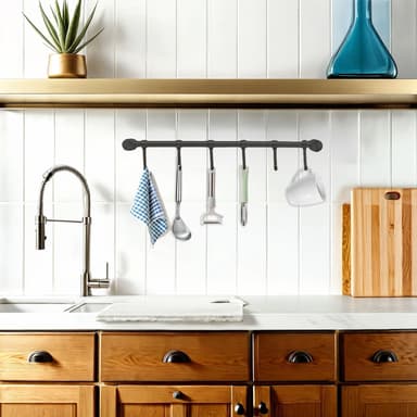 Ha dina köksredskap samlade på ett ställe. Vår krokskena ger bättre ordning och är dessutom platsbesparande.