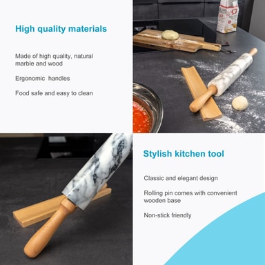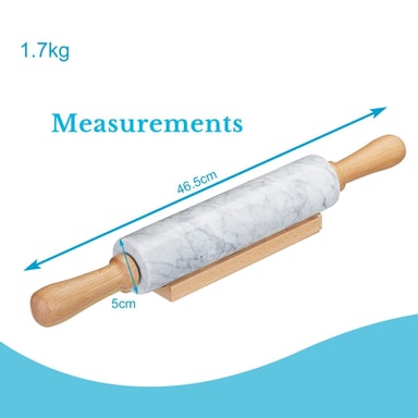 Kaveln av naturlig marmor med en längd på 46.5 cm är tillräckligt tung för att rulla degen jämnt utan extra ansträngning.