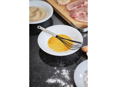 Den platta vispen är speciellt lämplig för vispning av mindre mängder ingredienser i små skålar, då den inte tar mycket plats. Materialen, 18/10 rostfritt stål och silikon, ser till att vispen även klarar av höga temperaturer på upp till 260°CLäs mer om produkten