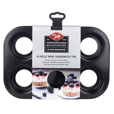 Formen är en del av Tala Performance Bakeware10 års garanti!Mått: 26,9 x 18,5 x 3,4 cmGör 6 st Muffins / Bullar• Kyl, frys och diskmaskin säkert• Säker för användning med metallredskap• Värmesäker upp till 240°C• PFOA, PTFE och BPA-friLäs mer om produkten