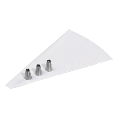 3 stjärnformade munstycken i olika storlekar - perfekt för virvlar på muffins. Setet innehåller engångspåsar.Läs mer om produkten