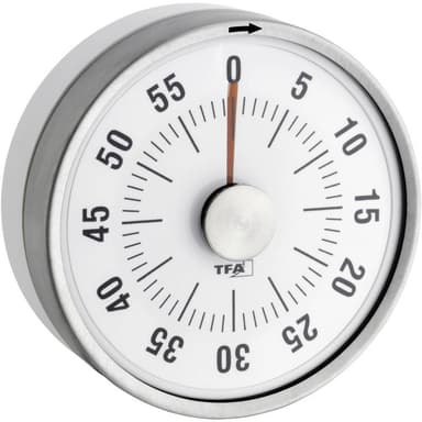 TFA Dostmann Puck Timer Vit analogHölje i rostfritt stål · Plast- och gummibeläggning · Metalltimer till 60 minuter · Dras upp för handHölje av rostfritt stål · Plast- och gummibeläggning · Metallverk till 60 minuterLäs mer om produkten