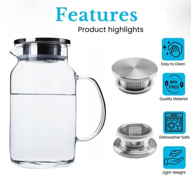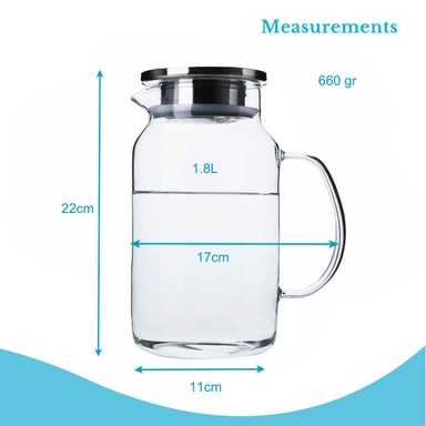 1,8 l glaskanna med handtag och avtagbart filterlock - värmetålig lämplig för varma och kalla drycker.