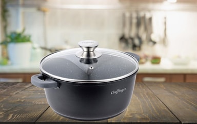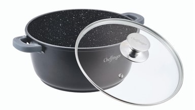 Med denna kastrull kan du förbereda de mest utsökta rätterna. Den är gjord i gjuten aluminium och har en 3-lagers marmorbeläggning och avtagbara silikonhandtag.Läs mer om produkten
