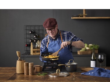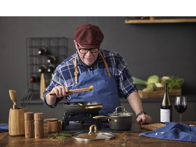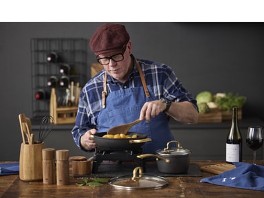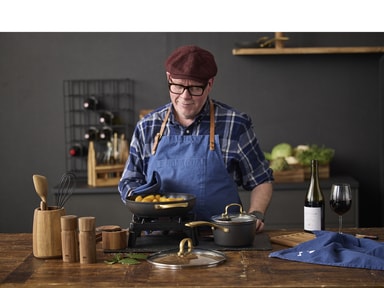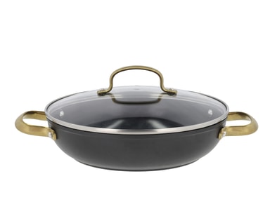 Brasserie-serien är tillverkad i aluminium. Kastrullerna och stekpannorna har en keramisk beläggning på insidan, svart beläggning på utsidan och matt mässingsfärgade handtag och greppLäs mer om produkten