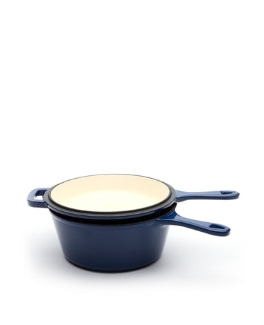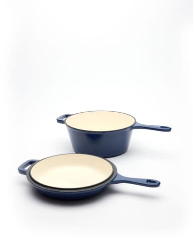 Utforska ny matlagningsdimension med Jernverkets gjutjärns set - en 2-i-1 djup traktörpanna och stekpanna. Grytan, med 2,5 liters kapacitet och höga kanter, passar perfekt för kött och grytor. Stekpannan, som också fungerar som lock, med 21 cm diameter ger extra mångsidighet.