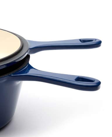 Dessa köksmästerverk är kompatibla med alla spistyper, inklusive induktion och över öppen spis. Gjutjärnskonstruktionen tål ugnsvärme upp till 260 grader. Den behandlade ytan med vegetabiliska oljor ger skydd och enkel rengöring.